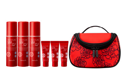 オールインワン モイスチャー ジェル リッチ 100g(本品)×2本に、便利なミニサイズ(オールインワン モイスチャー ジェル リッチ 25g×2 非売品)と、モイストローションマスク×3枚、さらに人気のウォータリーUVジェルのミニサイズ(非売品)をセットにしたスペシャルセットでお届けいたします。 - ◆SPA トリートメントリップジェル 3本特別セット