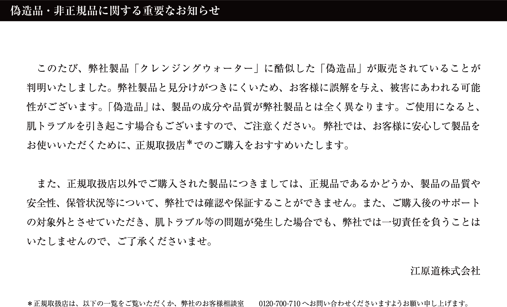 偽造品・非正規品に関する重要なお知らせ
